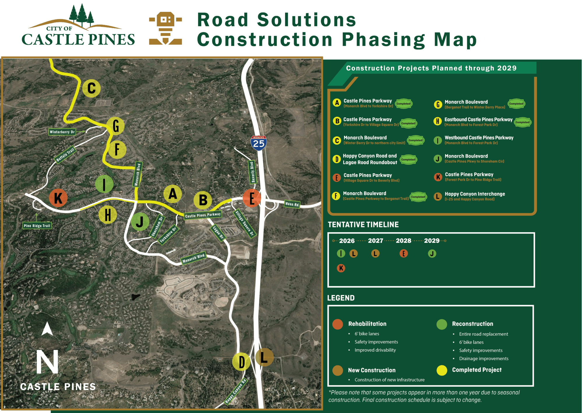 - The reconstruction of eastbound Castle Pines Parkway from Forest Park Drive to Monarch Boulevard.